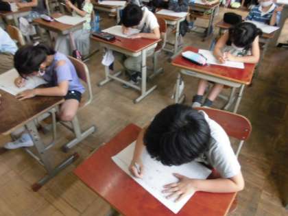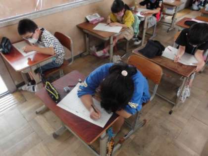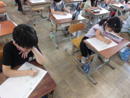 今日の最後の学習は,算数のおさらいプリントです。わり算の計算問題や文章問題でしたが,これまでの学習が理解できているようで,「このプリントは簡単や。」と感じて積極的に取り組んでいました。