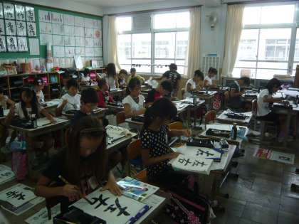 今日4年生では,書写の学習を行いました。「左右」という文字を毛筆で文字の筆順や長さに気をつけて書きました。子どもたちは,「左と右では,似てるけど書き順がちがうな〜」としっかり学習の目的を意識しながら書写することができました。
