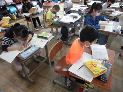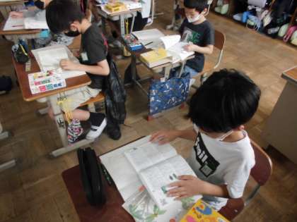 国語の時間に国語辞典の使い方を学習しました。今日は,学習を生かして,いろんな言葉の意味を調べました。五十音順を頭の中で思い浮かべながら,ページをめくり指でたどりながら探していました。見つけた時には,「あった!」と喜んでいました。
