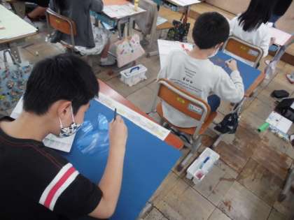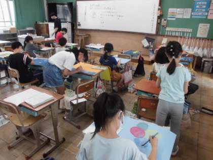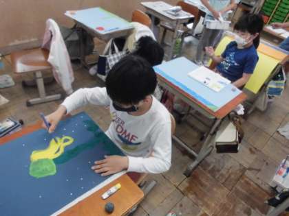 図工の時間には,自分だけのまぼろしの花を想像して描きました。どんな種なのか?花びらは何枚あるのか?葉の大きさは?いつ咲くのか?など,どんどん思いを膨らませていました。