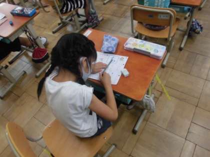 「ちいず」「ちりとり」「ちきゅう」「ちくわ」など「ち」のつく言葉をたくさん知っています。今日,学習する平仮名は「ち」でした。何番のお部屋に書くのか気をつけながら書いていました。