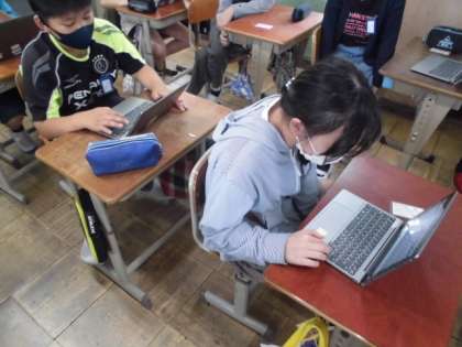 GIGA端末の準備は抵抗なくできるようになってきたので,今日は,teamsを使ってメッセージを送ることに挑戦しました。初めて扱う機能なので,簡単なメッセージを送ってみました。その後,みんなでしりとりゲームをしてみました。自分のメッセージが送られたことが確認できるとホッとした様子でした。