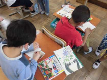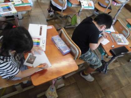 学校の中にはいろんな部屋があります。自分たちの使っている教室や図書館,理科室などいろんなところがあるので,それぞれの部屋にあるものも違います。今日は,自分が見つけたものをみんなに紹介するためにイラストを描きました。