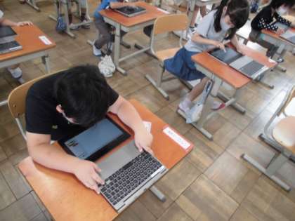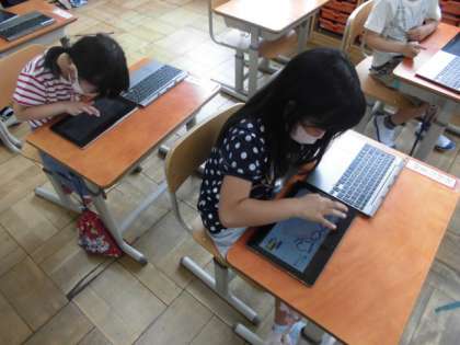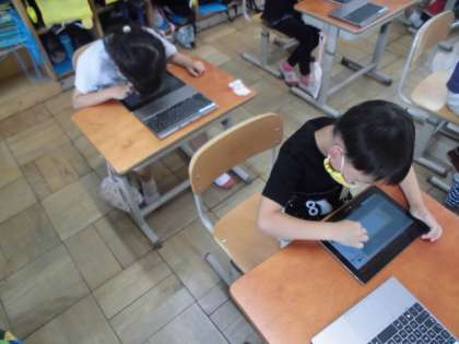 今日は,タブレットの中にある「ペイント」を使って,いろんな絵を描いてみました。いろんな色が選べたり塗り方も工夫できたりするので,楽しそうに絵を描いていました。