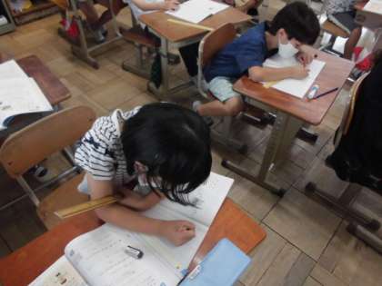 2つの道があるけれど,どちらも途中で曲がっているので,長さが分かりません。どちらの方が長いか比べる方法を考えました。ものさしを使って測った長さを合わせればいいのではないかと予想していました。
