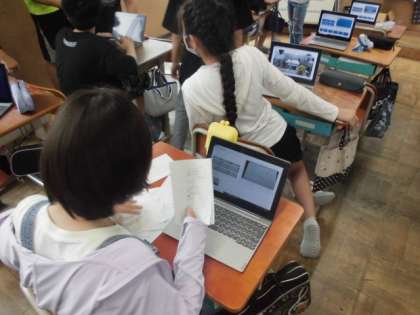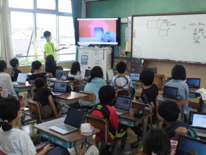 図工の時間には,パラパラ漫画の要領でたくさんの写真カットをつなげてアニメーションを作りました。少しずつ変化を加えて撮影した写真をつなげて再生すると,まるで生き物のように動いて見えます。自分が考えた動きが表現できると喜んでいました。