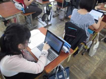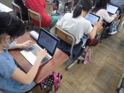 今日は,先生の作った質問にタブレットで回答しました。画面上で答え合わせをしたりグラフ化されたものを見たりしました。自分の答えが合っていると喜んでいました。