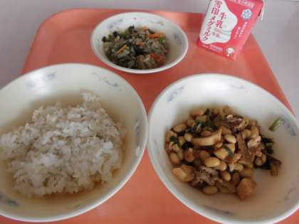 子供たちから,「『肉みそいため』は,味噌が少し濃い感じだったけど,お肉がやわらかくて,美味しかったです。『切干大根のごま煮』は,にんじんやだいこん葉がやわらかくて,美味しかったです。私は,切干大根が大好きなので,毎日でもいいくらい,美味しかったです。」と,感想をくれました。