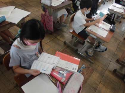 少し改まったお手紙の書き方を学習しました。どんな感謝を伝えたいか,その時の気持ちはどうか,今の自分の様子,そして,結びの挨拶という構成に合うように,内容を考えて下書きをしました。手紙を出す相手が受け取った時の様子を思い浮かべながら,できるだけ漢字を使うようにして書いていました。