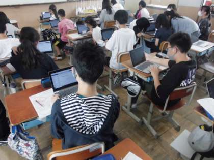 今日はタブレットを使って,クラスのいいところを出し合いました。teamsの中にスライドをいくつか作り,割り当てられたところに書き込んでいくようにしました。自分がどのスライドに書き込むのか迷っていましたが,自分の意見がスライドに反映されると喜んでいました。