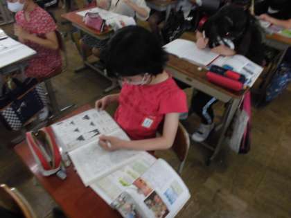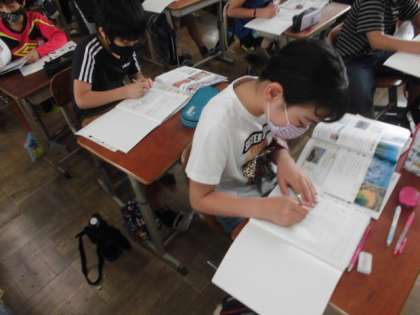 社会では,学習してきたことを振り返りながら自分なりにまとめました。その土地の様子が分かるようなキャッチコピーを考えたり,京都と比べてどんなことが分かったのか振り返っていました。