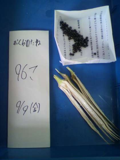 春に植えたオクラの種取りを5,6年生でしました。20cmはあるでしょうか、大きなさやからは96こもの種を採ることができました。まだまだ種のとれるさやがあります。4年生が帰ってきたら一緒に種取りができるのを楽しみにしています。