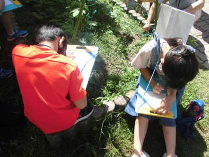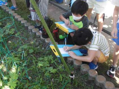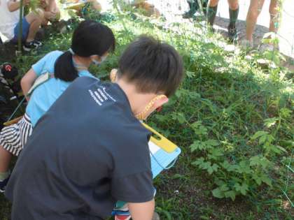 理科の学習で育てているツルレイシを観察しました。30cmものさしを使ってつるの長さを測ったり葉の大きさを比べたりしました。先週は観察できなかったので,今日見ると,思っていた以上に大きく成長していることに驚いていました。