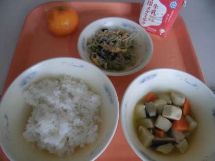 子供たちから,「『高野どうふと野菜のたき合わせ』は,高野どうふがふわふわしていて,おいしかったです。『もやしの煮びたし』は,もやしがシャキシャキしていて,おいしかったです。」と,感想をくれました。