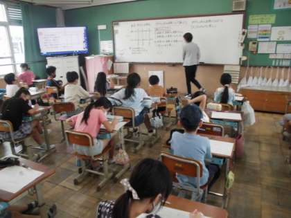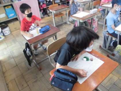 算数の時間には,2本の平行な直線について調べました。1つの直線に対して垂直な場合,もう1本の直線にも垂直な関係にあることや幅が同じであることが分かりました。