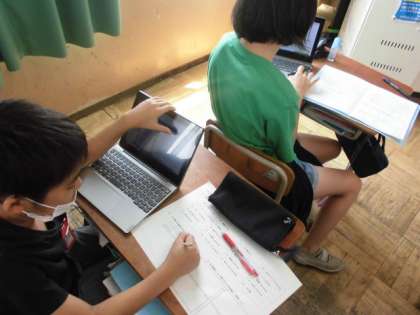 「おしゃれ」「アニメ」「スポーツ」「食べ物」などたくさんのテーマから自分が興味あるものを1つ選んで,どんな仕事があるか調べました。あまり聞きなれない仕事の名前も出てくるので,さらに調べていました。