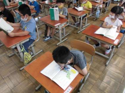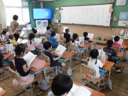 国語の時間には「おおきなかぶ」という教材で学習を進める計画を立てました。どんなものが出てくるか見つけた後は,みんなで音読の練習をしました。グループに分かれて役割を決め,音読発表会をする予定です。それまでおうちでも音読の練習をがんばってほしいと思います。