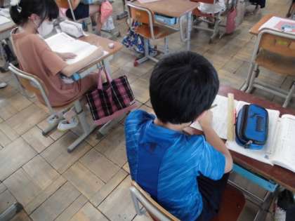 登場人物の会話や行動から自分の考えが変わったところを中心に感想をまとめました。単元のはじめに題名から想像したお話の内容と比べてどうだったか,戦争中から戦後の様子を知ることで何か変わったかなど自分の考えをノートにまとめました。