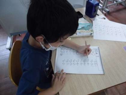 算数の時間には,自分に合った算数プリントに取り組みました。時計や計算,図形などいろんな学習をして力を伸ばしていました。