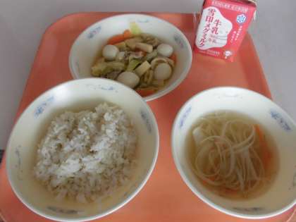 子供たちから,「『うずら卵とキャベツのいため煮』は,うずら卵やキャベツがやわらかくて,とっても美味しかったです。『ミーフンスープ』は,もやしの食感がサクサクしていて,おいしかったです。」と,感想をくれました。