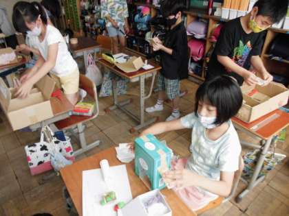 イメージがどんどん膨らんでいるようで,箱を斜めに切ったり文字を作ったりして,どんどん制作を進めていました。みんな夢中になっている様子が印象的でした。