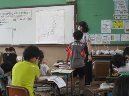 調べたことまとめると,それぞれの食料品によって,産地に特色があることが分かりました。さらに,その特色は,気候,地形などの土地の様子といった自然条件に合わせて,生産がされているからだということにも気付くことができました。