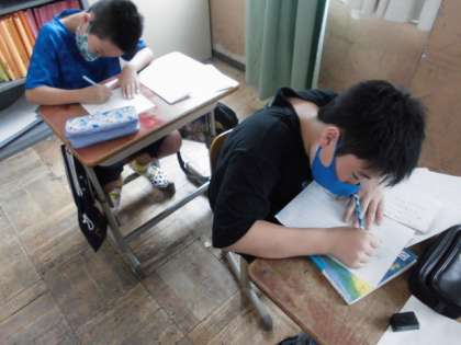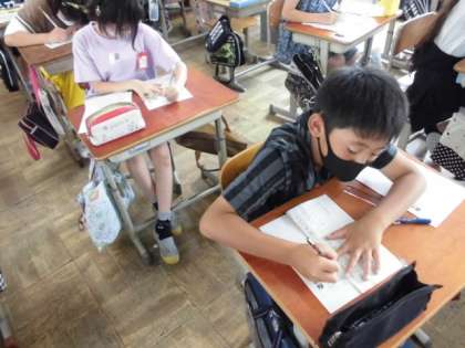 文字の大きさや中心に気をつけて,竹取物語の冒頭部分「今は昔 竹取の翁といふ者ありけり。野山にまじりて〜」を書き写しました。漢字とひらがなでは少し大きさが違うので,気をつけながら集中して書きました。