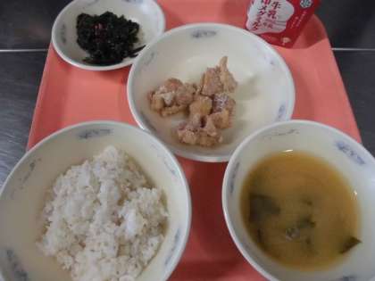 子供たちから,「『鶏肉のからあげ』は,外がカリッとしていて,とっても美味しかったです。『ほうれん草のごま煮』は,ごまが入っていて,おいしかったです。『みそ汁』は,みそのうま味と玉ねぎのあまみがあって,おいしかったです。」と,感想をくれました。