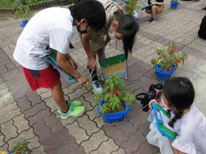 中庭のホウセンカもぐんぐん育ち,いろんな色の花を咲かせています。今日は,理科の時間に観察してカードに記録しました。思った以上に花がたくさんあったり茎が高くなっていたりしてとても嬉しそうでした。茎の長さを測って記録している子もいました。