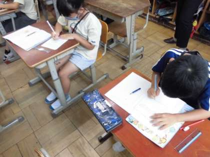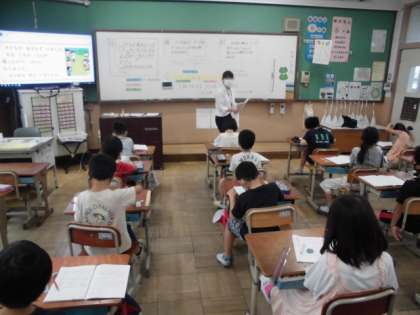 遊んでいる子どものうち13人帰ったので,18人になった時,はじめに何人いたのか考えました。問題文を読んだりテープ図に表したりすることで,たし算をするのかひき算をするのか考えました。式に表した後,なぜそうしたのか理由も考えました。