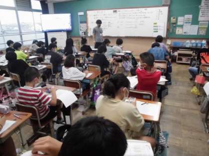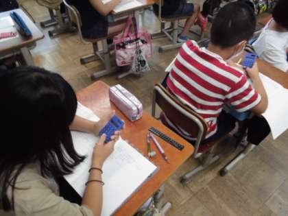 日本の人口について調べた資料を見ながら,どんなことが分かるか考えました。いつ頃の人口が多いのか?70歳以上の人口が一番多い都道府県はどこか?などグラフから読み取りながら計算するため,今日は電卓を使いました。条件に合った答えを見つけるためにどのグラフを見ればいいか考えながら計算していました。