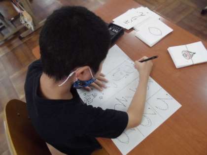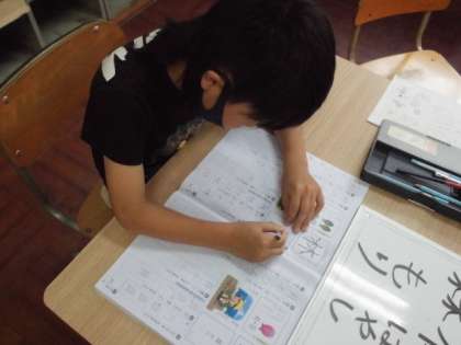平仮名,カタカナ,漢字など自分に合った文字を練習しました。お手本を見ながら丁寧になぞっていました。