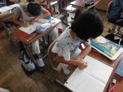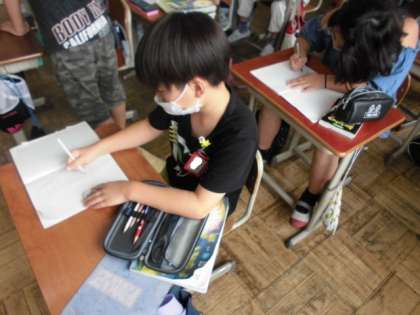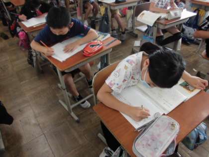 今日の国語では,「カレーライス」というお話を読んで,どんなことを思ったのか感想をノートに書きました。同じ年頃の主人公の心の葛藤に共感したり自分だったらどうするか考えたりしていました。