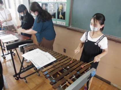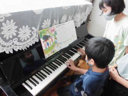音楽の時間には,パートごとに役割を決めて楽器の音色を生かせるように合奏に取り組みました。ピアノや木琴などは,普段あまり演奏する機会がないので,なかなか楽譜通りに演奏することができません。それでも友達と一緒に練習に励んでいました。