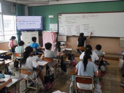 瀬戸大橋の長さは,9.368kmあるそうです。この「9.368」という数字はどんな数字なのか考えました。1が9こ,0.1が3こ,0.01が6こ,0.001が8こ集まった数と言えたり,0.001が9368こ集まった数と言えたりすることを知りました。