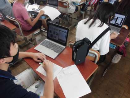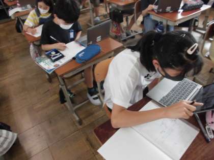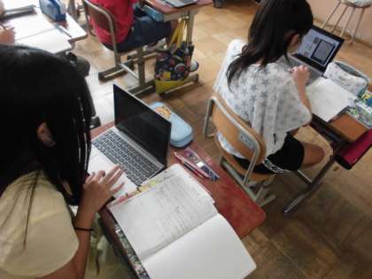 理科の時間には,生き物と水がどのように関わっているのかタブレットで調べました。調べたことを植物・動物に分けてそれぞれでまとめていました。