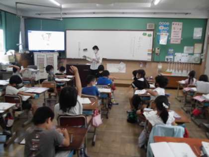 梅雨もそろそろ終わりのようで,晴れ間が見えるとずいぶん暑く,ようやく夏がやってきたという感じがします。夏らしいものといえば「せみ」「すいか」「アサガオ」「ひまわり」などたくさんあります。今日の国語の時間には,「みんみん」という詩を音読した後,自分がどんなもので夏を感じるのか考えました。