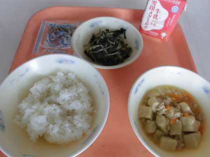 子供たちから,「『高野豆腐のそぼろ煮』は,お肉と高野どうふがやわらかくて,おいしかったです。『ほうれん草ともやしのごま煮』は,ほうれん草がやわらかくて,おいしかったです。」と,感想をくれました。