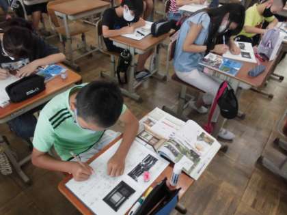 京都にある金閣と銀閣の写真を見比べて気づいたことを出し合いました。その後,「銀閣」について詳しく調べました。金閣とは違い,質素な感じだが,今の和室につながるつくりになっていることが分かりました。
