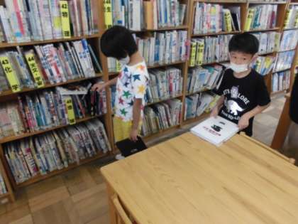 夏休みに読んだ本を返した後,自分が読みたい本を探して借りました。長いお話に挑戦したり気に入ったものを繰り返し読んだりしていました。