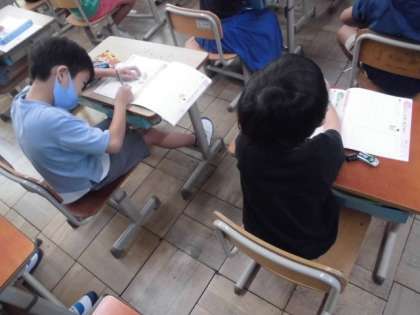 道徳の時間には,アンリ=ファーブルという人物を通して,命のすばらしさについて考えました。虫が大好きな主人公は,夢中になって虫を観察します。やがて,みんなにも虫のことを知ってもらいたいという気持ちが芽生えてきます。そんな中,虫を自然の中へ返す姿から「虫にも命がある」「命を大切にしているんだ」ということを感じていました。
