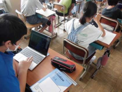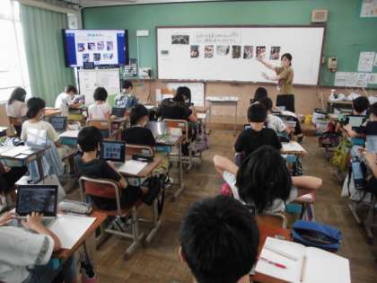 社会の時間には,水産業について学習しています。今日は,魚が水揚げされてからどのようにして私たちの手元に届くのか考えました。ロイロノートで配布された数枚の写真を順番に並び替えて考えました。並び替えが終わると,それぞれの写真を見て,どんなことをしているのか書き込むようにしました。