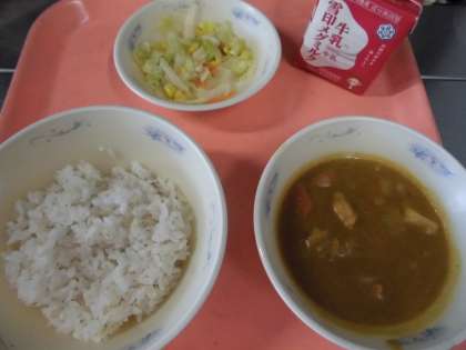 子供たちから,「『チキンカレー』は,少しピリ辛で美味しかったです。『野菜のソテー』は,野菜もシャキシャキで美味しかったです。」と,感想をくれました。