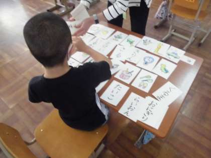 国語の時間には,文字の学習をしました。カタカナの練習プリントをしたりカルタを使って言葉を増やしたりしました。最後まで丁寧に書くようにしていました。
