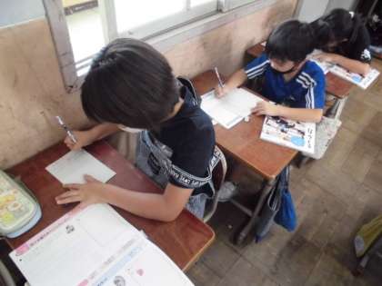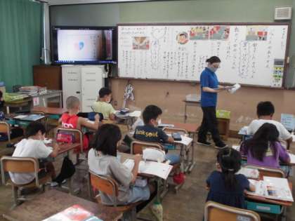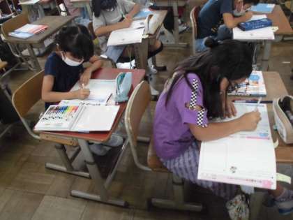 道徳の時間には,「ジュースのあきかん」というお話を通して,心に響いたことについて考えました。電車に乗っていると,ジュースの缶が置きっぱなしになっていました。その時,転がって中身がこぼれてしまいました。中にはあきかんを蹴っている人もいましたが,自分から拾って駅のゴミ箱に捨てている女性がいました。その姿から主人公はどうすればよかったのか自分だったらどうするか考えました。