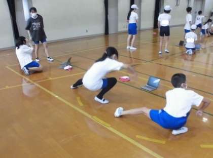 体育の時間には,表現運動に取り組みました。子ども達にとって「ソーラン節」はどんな踊りなのかイメージがありません。そこで,踊り全体のイメージをつかむために動画を見ながら踊ってみました。何度も繰り返しているうちに,イメージをつかむことができていました。
