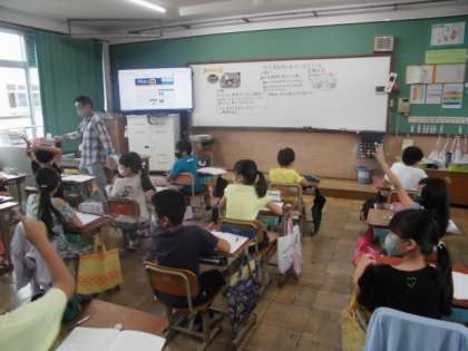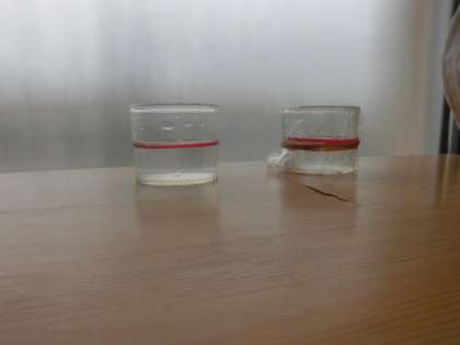 最近,雨が降る日が増えたように感じます。理科では,ちょうど雨水について学習しているので,水たまりにも興味をもって観察しています。水は高いところから低いところへ流れてたまることや水の流れは地面の傾きが関係していることを学習してきました。今日は,空気中に水が出ていくのか実験することにしました。カップに同じ量の水をためて,片方にラップでふたをしました。数日後に結果が分かるので,楽しみです。