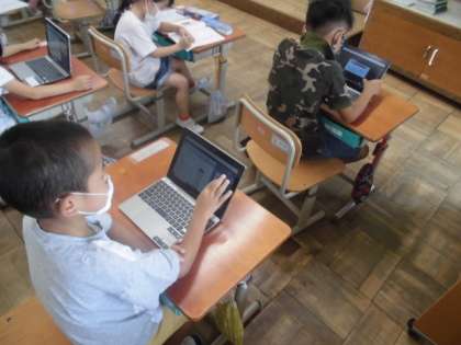 算数の練習問題ができたら,次は「ドリルパーク」の問題に挑戦です。自分でタブレットを立ち上げると,どんどん進めることができていました。自分の解答が合っていると喜んでいました。