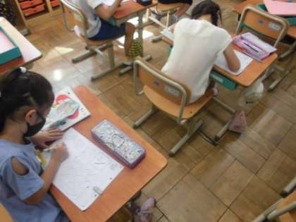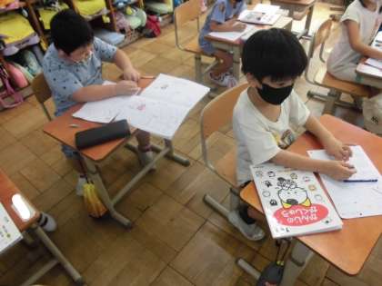 国語の時間には,カタカナの学習もしています。今日は「シ」でした。「ツ」とよく似ているので,書き始めの位置に注意しながら練習していました。