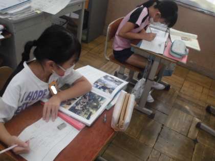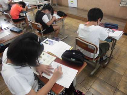 国語の時間には,事実にもとづいて書かれた本を読み,いいところを紹介する文を書きました。本の中から印象に残る言葉を取り上げ,感想などを書き加えました。自分がいいなと思った名言については,覚えておいて生活の中で意識していけるといいですね。